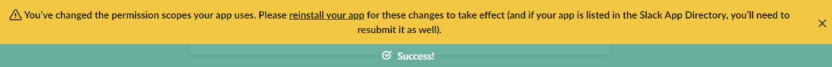 追加すると画面上部に追加完了と、アプリのreinstallが必要な必要な旨が表示されるので、書かれているリンクに進んで更新した権限で再インストールする。